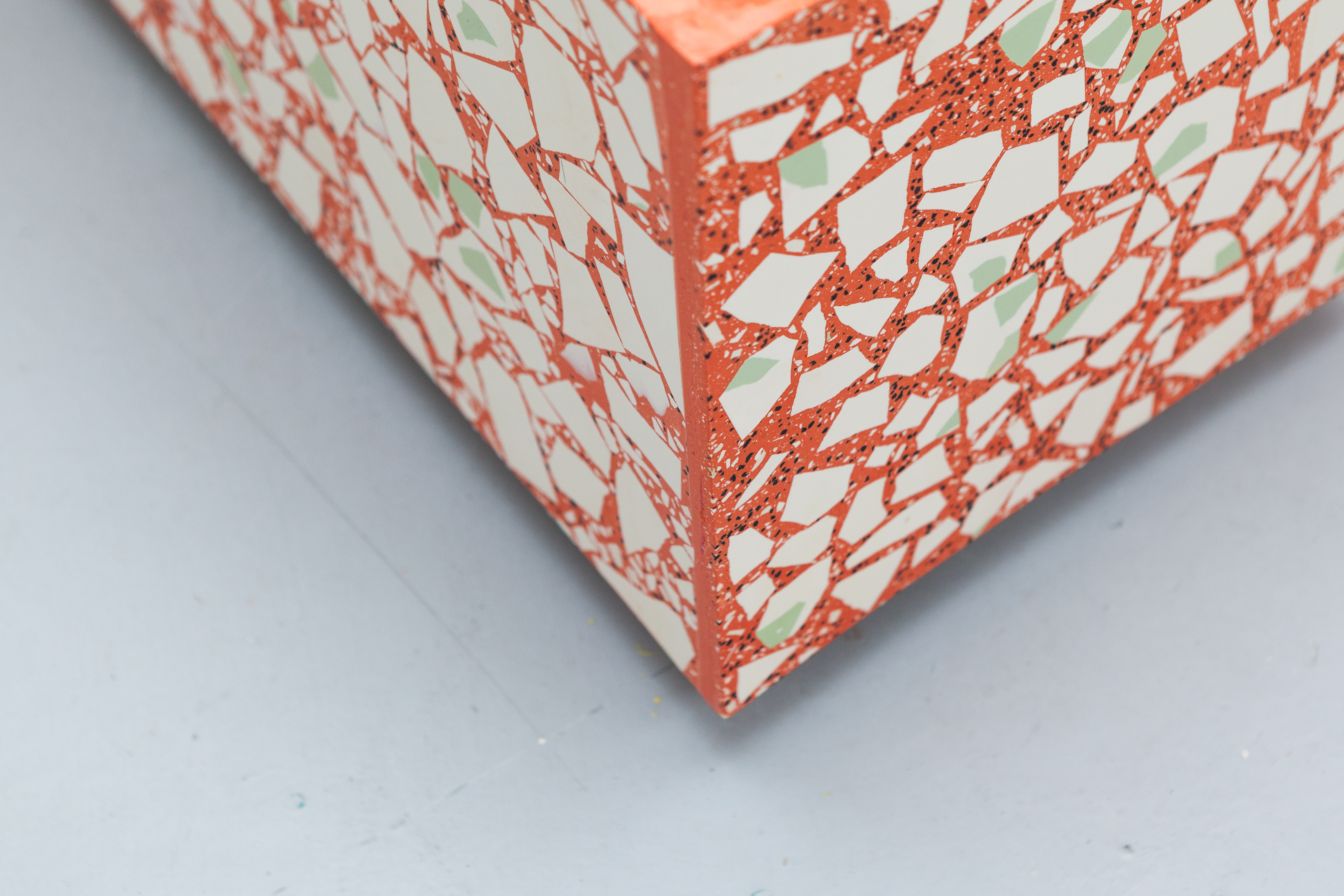 Comissioned for Blythswood House halls of residence, Glasgow, This bespoke set of outdoor planters were designed and built for exterior use with a Terrazzo effect using Jesmonite cast into slabs and assembled with an interior frame.